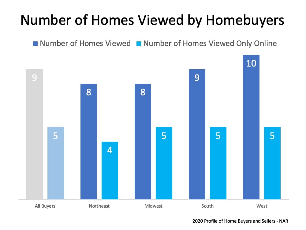 “Buyers viewed five homes online and four homes in-person during the pandemic, compared to nine homes in-person in 2019, according to NAR. This was the first year NAR asked buyers to specify the number of homes toured virtually.”
