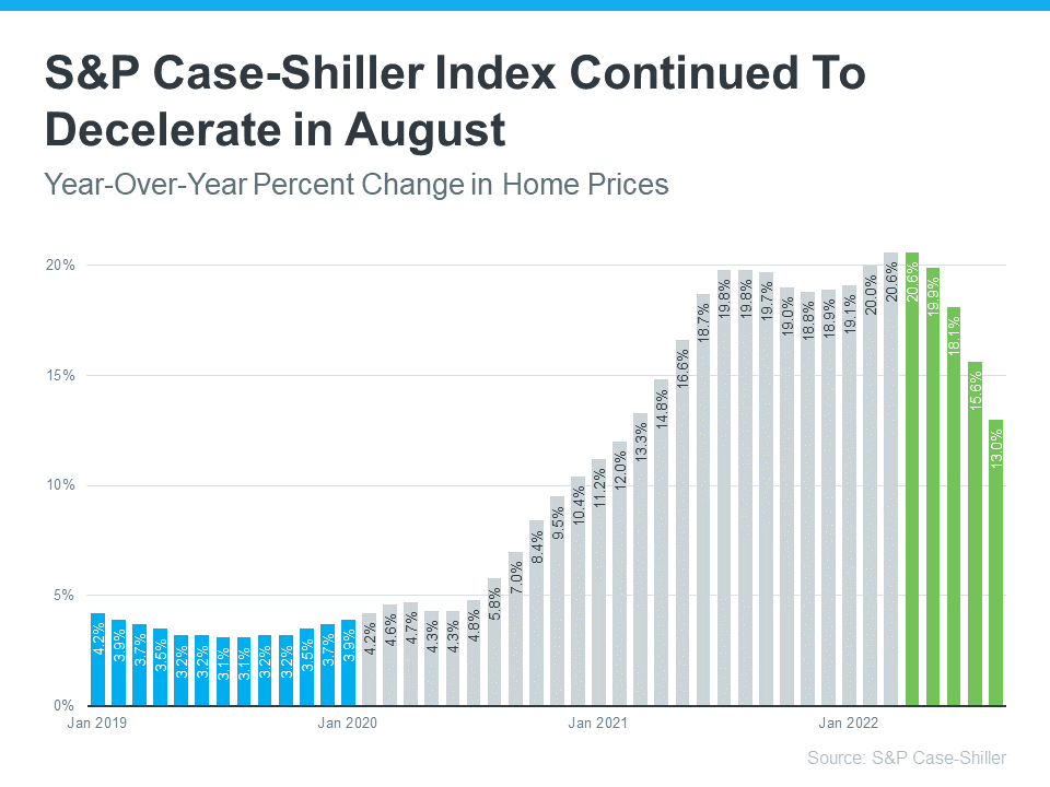 This deceleration is happening because higher mortgage rates are moderating demand, and as a result, easing the buyer competition and bidding wars that previously drove prices up.