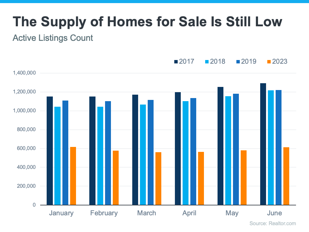 One of the biggest challenges in the housing market right now is how few homes there are for sale compared to the number of people who want to buy them. To help emphasize just how limited housing inventory still is, let’s take a look at the latest information on active listings, or homes for sale in a given month, as it compares to more normal levels.