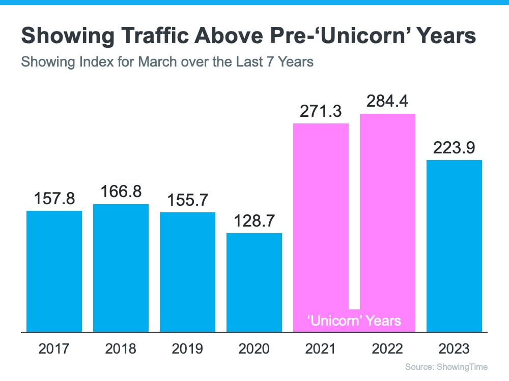 If you look at the headlines, you’d think there aren’t any buyers out there. We still sell over 10,000 houses a day in the United States. Of course, buyer demand is down from the two ‘unicorn’ years. But, according to ShowingTime, if we compare it to normal years (2017-2019), we can see that buyer activity is still strong (see graph below):