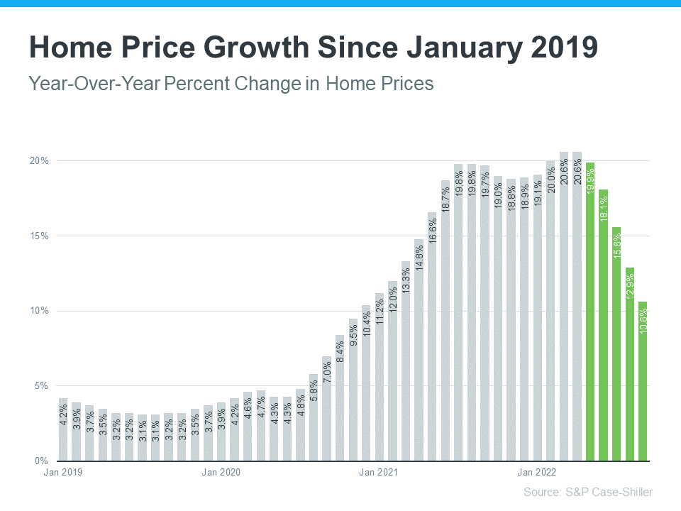 While home prices are down slightly month-over-month in some markets, it’s also true that home values are up nationally on a year-over-year basis. The graph below uses the latest data from S&P Case-Shiller to help tell the story of what’s actually happening in the housing market today: