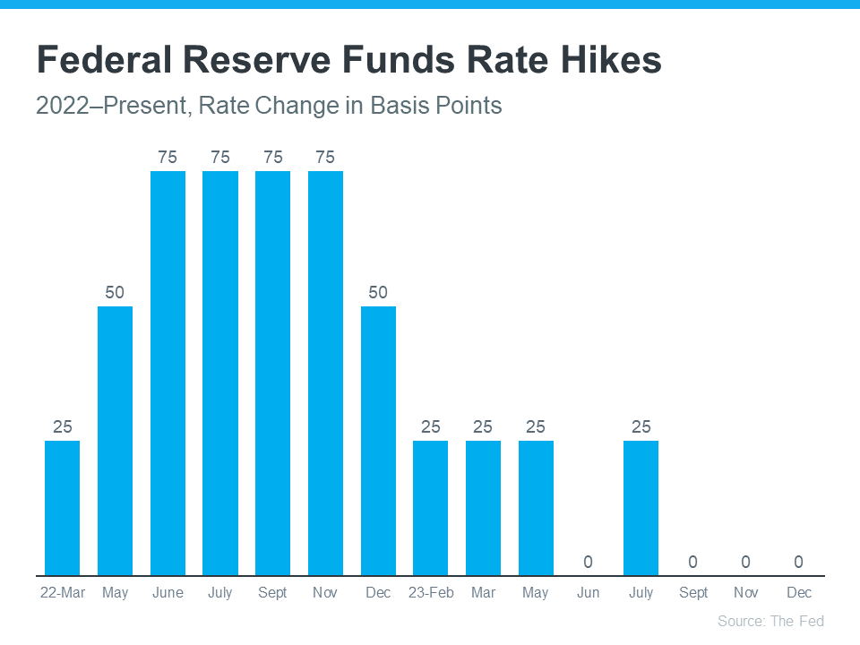 Recently inflation has started to cool, a signal those increases worked and are bringing inflation back down. As a result, the Fed’s hikes have gotten smaller and less frequent. In fact, there haven’t been any increases since July (see graph below):